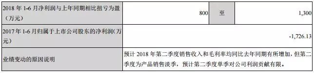 公告中對 2018 年 1-6 月經(jīng)營業(yè)績進行了預(yù)計,預(yù)計該時期內(nèi)經(jīng)營業(yè)績情況與上年同期相比扭虧為盈。