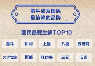 數據顯示,國民最愛的生鮮品牌TOP5分別是:蒙牛、伊利、上鮮、八喜、五芳齋。