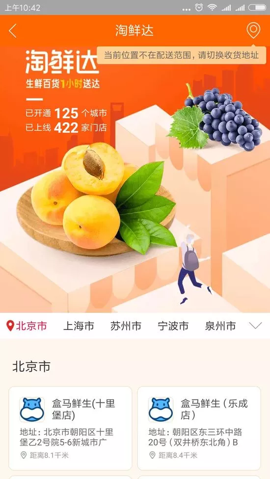 來源: 冷凍食品網(wǎng) 發(fā)布者:編輯主打生鮮百貨1小時(shí)送達(dá)的淘鮮達(dá)目前已開通125個(gè)城市,上線422家門店。