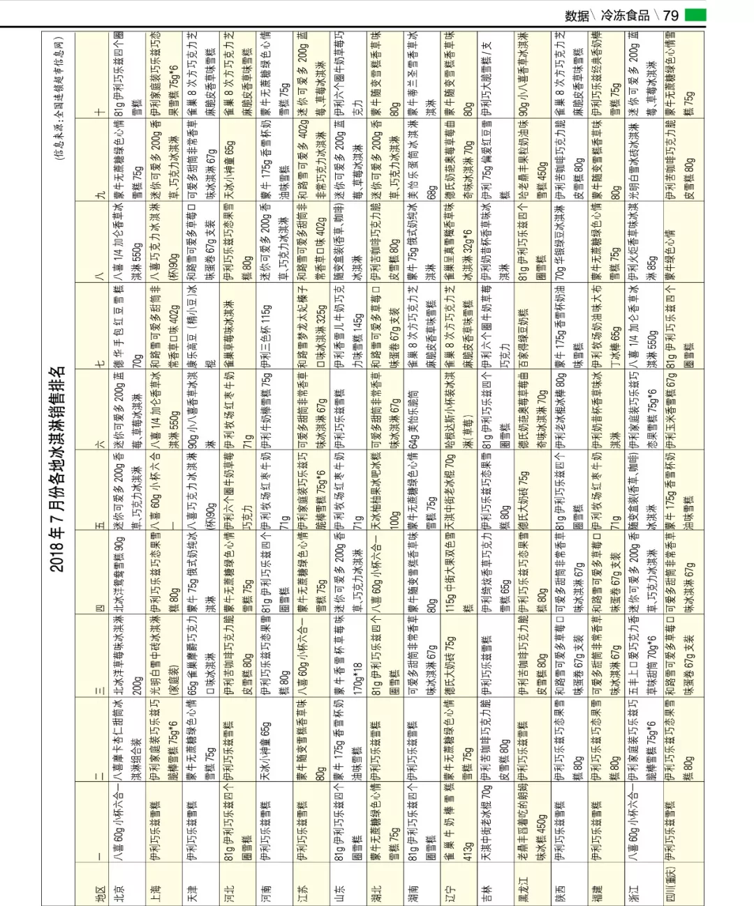 來源: 冷凍食品網(wǎng) 發(fā)布者:編輯▼2018年7月份各地冰淇淋銷售排名