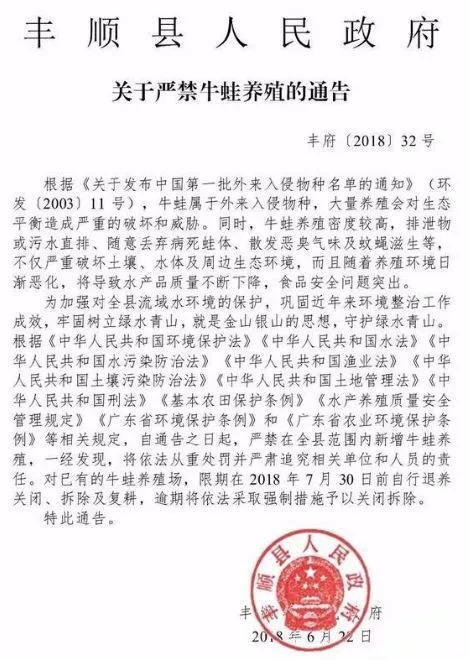 ▲廣東豐順縣禁養(yǎng)通告
