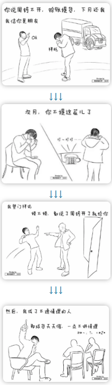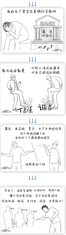 其實(shí),我收欠款也不是存銀行,我也是要付給我的供應(yīng)商,我的供應(yīng)商給了我最大的信任和支持,但是我知道他們和我一樣資金緊張。