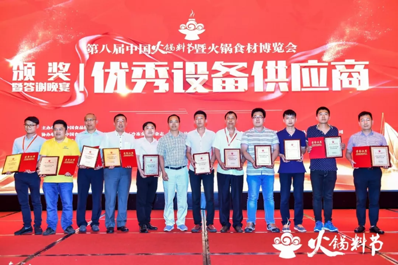 頒獎儀式在第八屆中國火鍋料節晚宴現場隆重舉行。現場燈光璀璨,掌聲雷動,為獲獎者加冕。