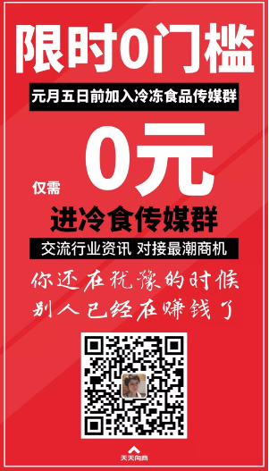 值此年底供銷兩旺時期,冷凍食品傳媒特重磅推出冷凍食品商機對接群,限量99個名額0門檻入群,凍品商朋友還等啥,趕緊長按二維碼添加工作人員微信(wechat:13598006891)免費入群,對接最新商機吧。