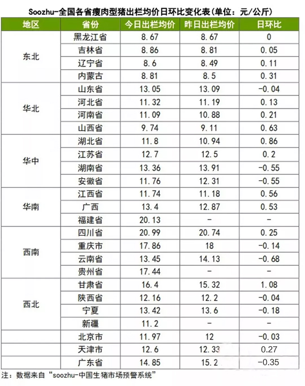 二:內蒙古外三元指導價為9.2元/公斤,安徽為11.9元/公斤,廣東為17.8元/公斤。