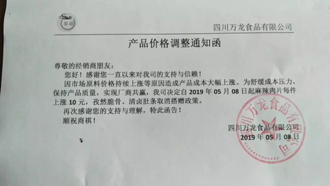 這兩天,有不少經銷商和廠家發布新一輪漲價通知,漲價產品主要是和豬肉、雞肉有關的制品。一起看看吧!