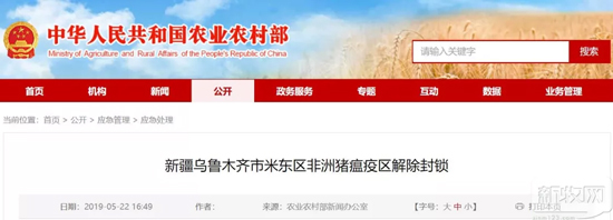 農(nóng)業(yè)農(nóng)村部5月22日接到新疆維吾爾自治區(qū)畜牧獸醫(yī)局報告,經(jīng)評估驗收合格,新疆維吾爾自治區(qū)烏魯木齊市米東區(qū)非洲豬瘟疫區(qū)解除封鎖。