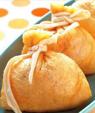 3.取一片作法1的油揚,取適量作法2的材料包入油揚福袋中。