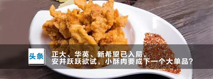 洛陽正大食品將酥肉產(chǎn)品工業(yè)化,在確保菜品口味穩(wěn)定、工藝穩(wěn)定的前提下,也有效避免了小作坊式手工生產(chǎn)帶來的食品安全問題。與此同時,華英、新希望六和等巨頭也入局了小酥肉市場。