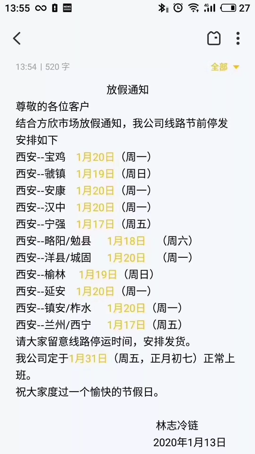 隨著年關越來越近,這兩天,一張張放假通知刷屏了冷食君的朋友圈,其中冷鏈物流企業的放假時間尤其值得留意,因為直到物流停了,才意味著春節備戰告一段落。