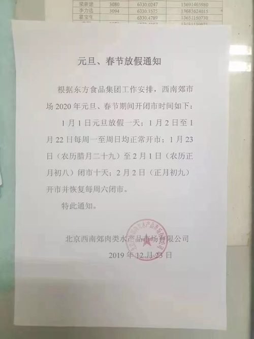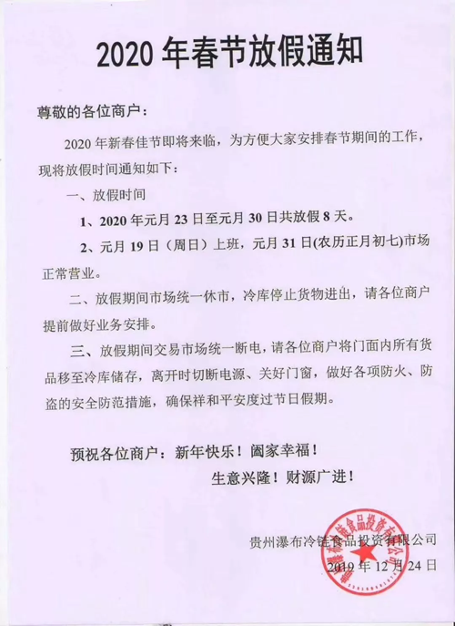 與此同時,多個凍品交易市場也張貼出了休市通知:
